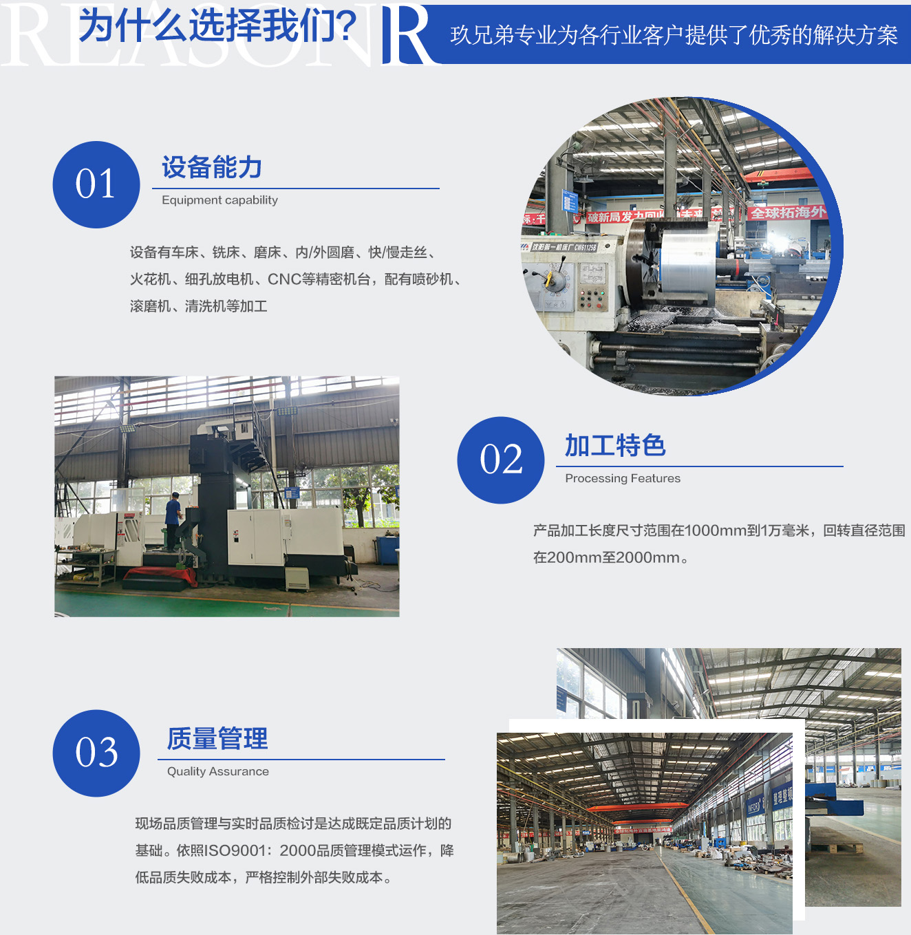 learn more→公司现拥有多台大行程龙门铣,数控龙门加工中心,数控车床,台湾大力铣床,5080摇臂钻。大行程线切割、火花机,以及10米大行程回转直径2米的卧式车床10余台。目前承接中大型机械零部件的加工。产品加工长度尺寸范围在1000mm到1万毫米,回转直径范围在200mm至2000mm。30多台套精密加工设备。凭借实战经验丰富的技术团队为您提供中大型零部件机加工足够的保障。在生产上有着充分制造技术和经验,为您提供合理的加工方案。也是产品质量的保证。同时具备各种高端的检测仪器设备。